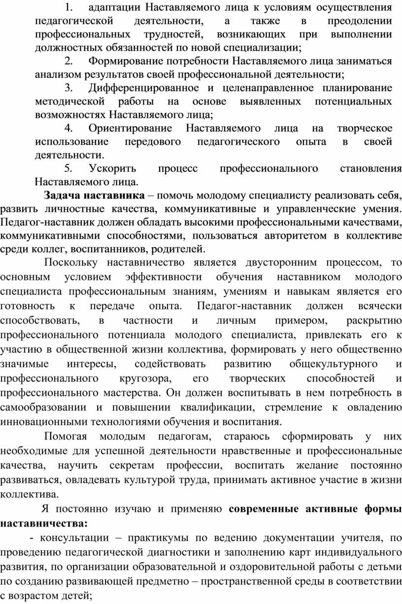 4. Ориентирование Наставляемого лица на творческое использование передового педагогического опыта в своей деятельности.