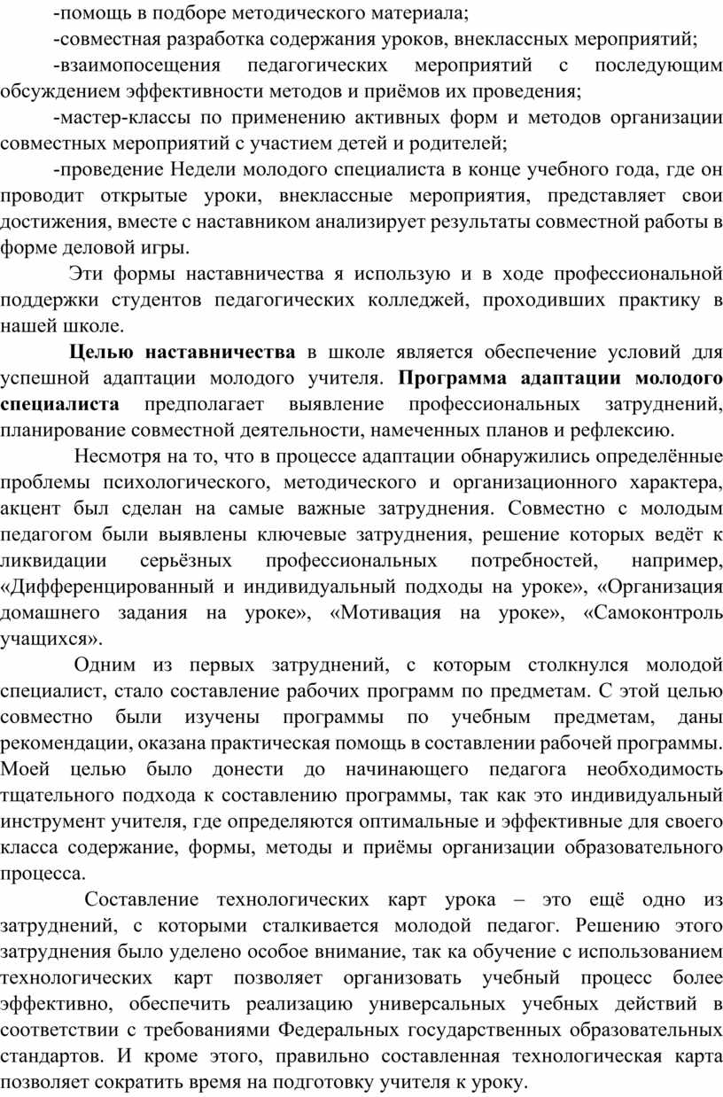 Как показывает опыт, посещение наставником уроков молодого специалиста позволяет своевременно выявлять возникающие у него затруднения и способствует устранению недостатков.