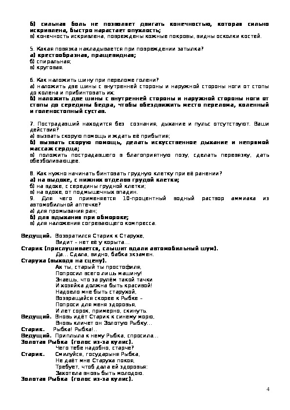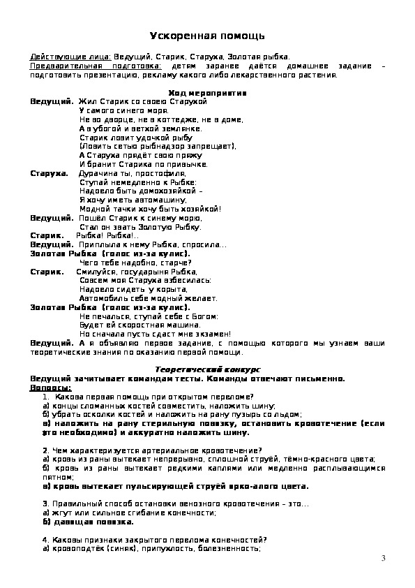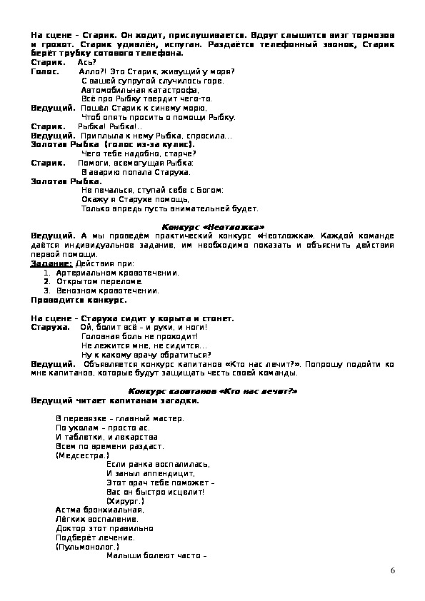 Ведущий. А мы проведём практический конкурс «Неотложка». Каждой команде