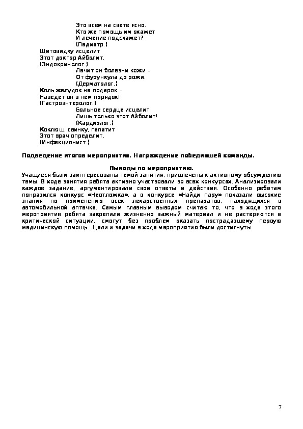 медицинскую помощь. Цели и задачи в ходе мероприятия были достигнуты.