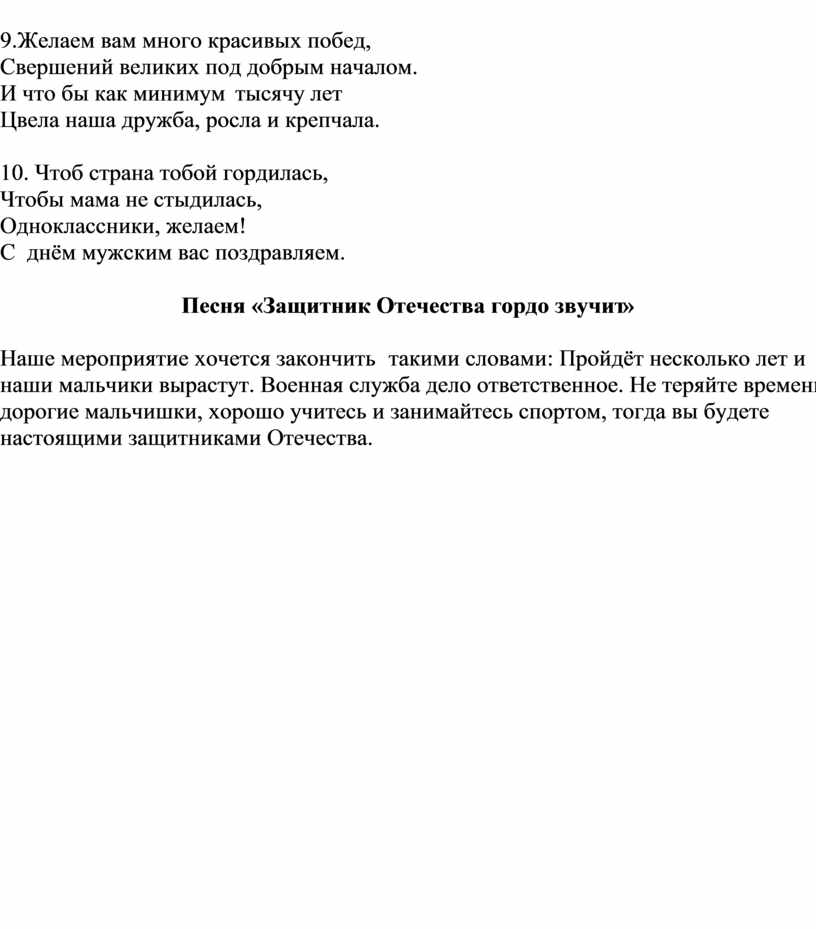 Песня «Защитник Отечества гордо звучит»