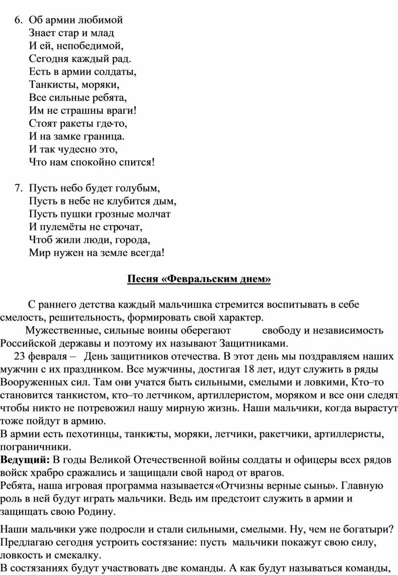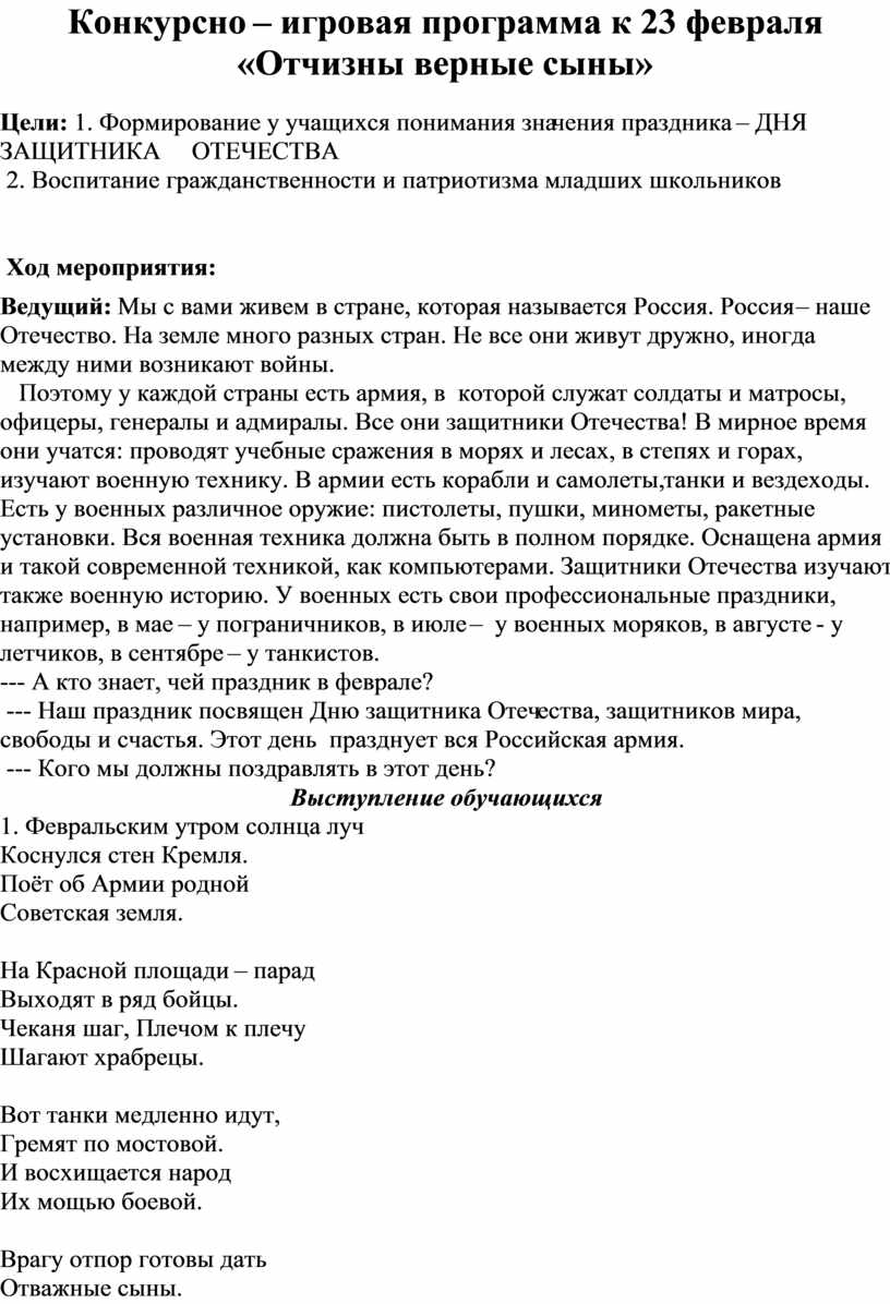 Конкурсно – игровая программа к 23 февраля «Отчизны верные сыны»