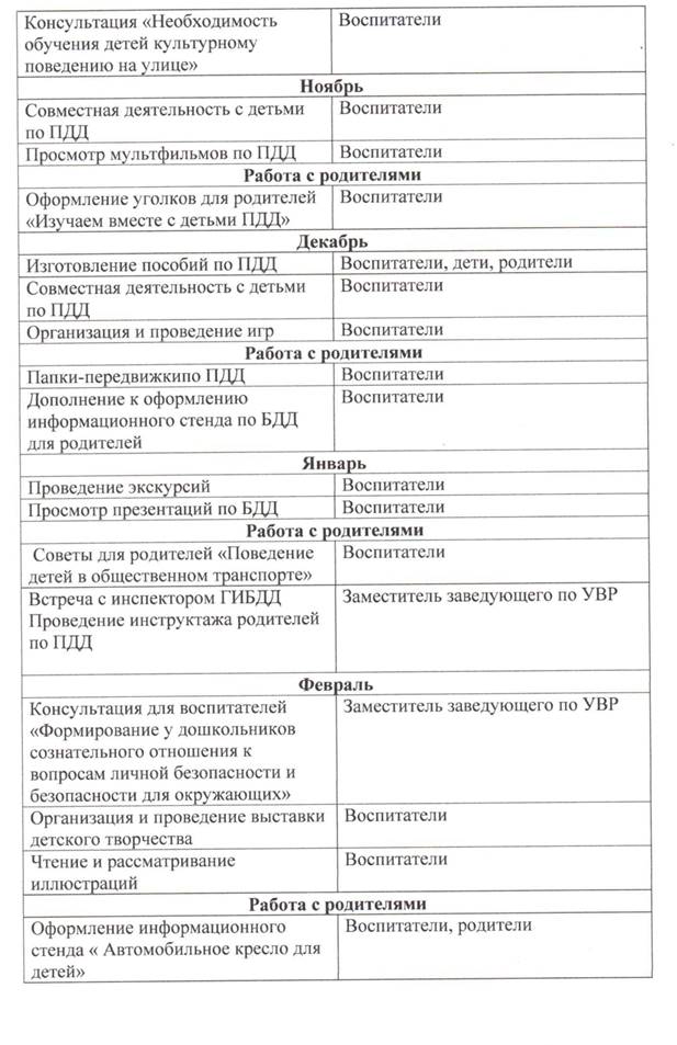 В течение года в групповых помещениях обновляются уголки по безопасности, проводятся консультации для родителей, сотрудники ГИБДД приглашаются на мероприятия по ПДД.