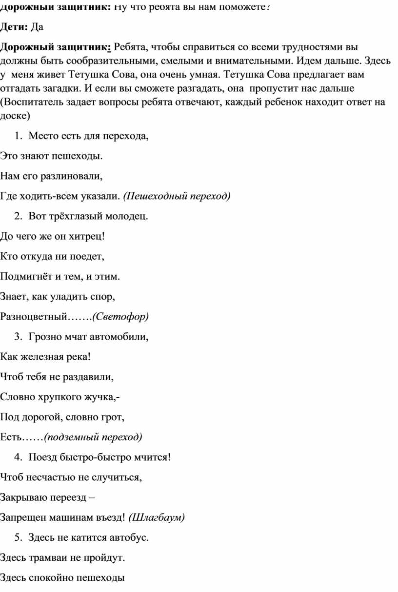 Воспитатель: Действительно, по пешеходному переходу. Его ещё можно назвать «Зеброй». Дети, а ведь у пешеходов есть помощники при переходе улицы. А чтобы узнать, что это за помощники, отгадайте мои загадки.