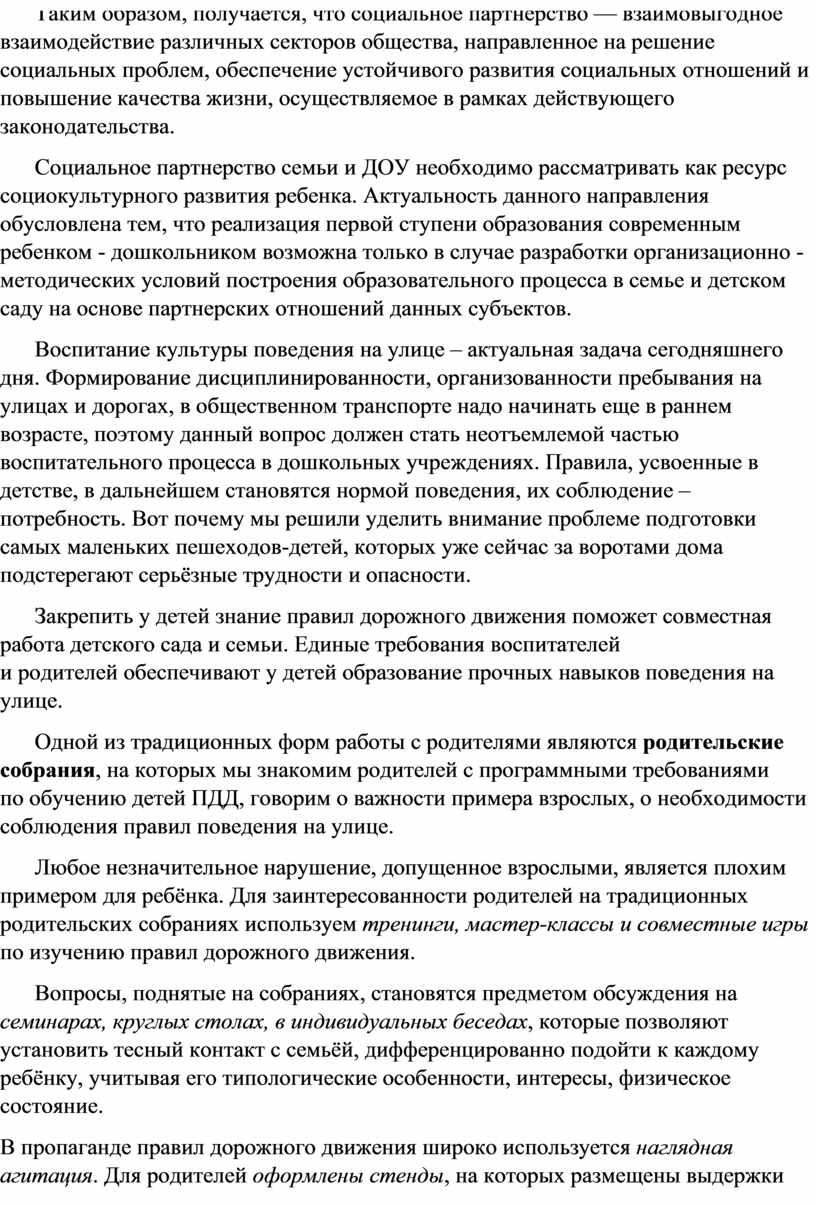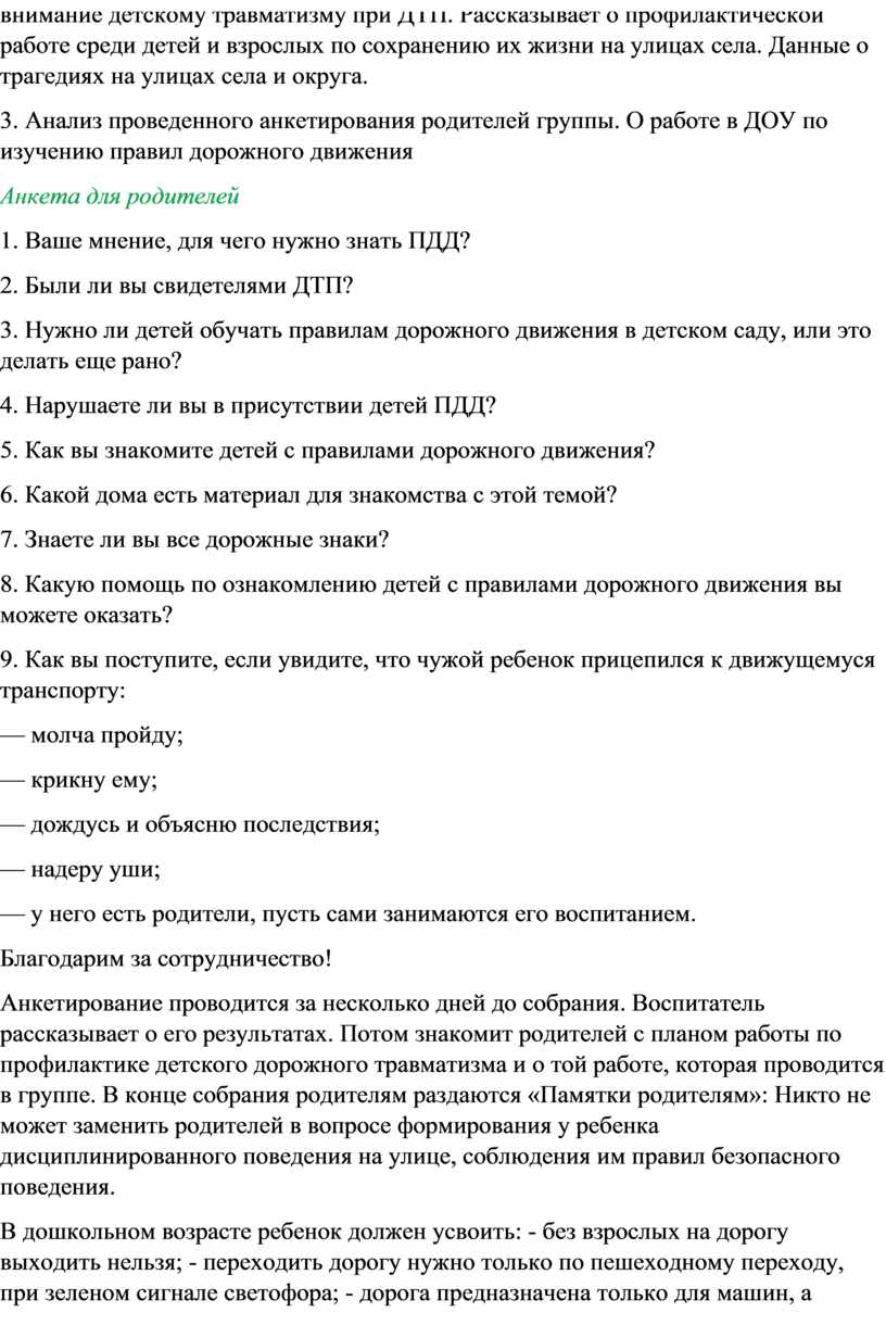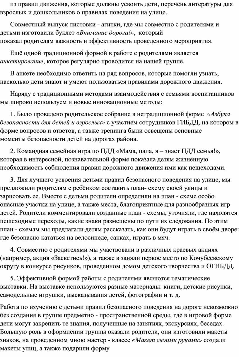 Социальная острота проблемы ДДТТ диктует необходимость активизации деятельности детских дошкольных образовательных учреждений, поиску новых форм и методов обучения и воспитания по профилактике ДДТТ, а также проведения профилактической работы с родителями на основе современных педагогических технологий, поэтому нами в тесном сотрудничестве с родителями решается вопрос по организации предметно-пространственной среды, в том числе по безопасности дорожного движения.