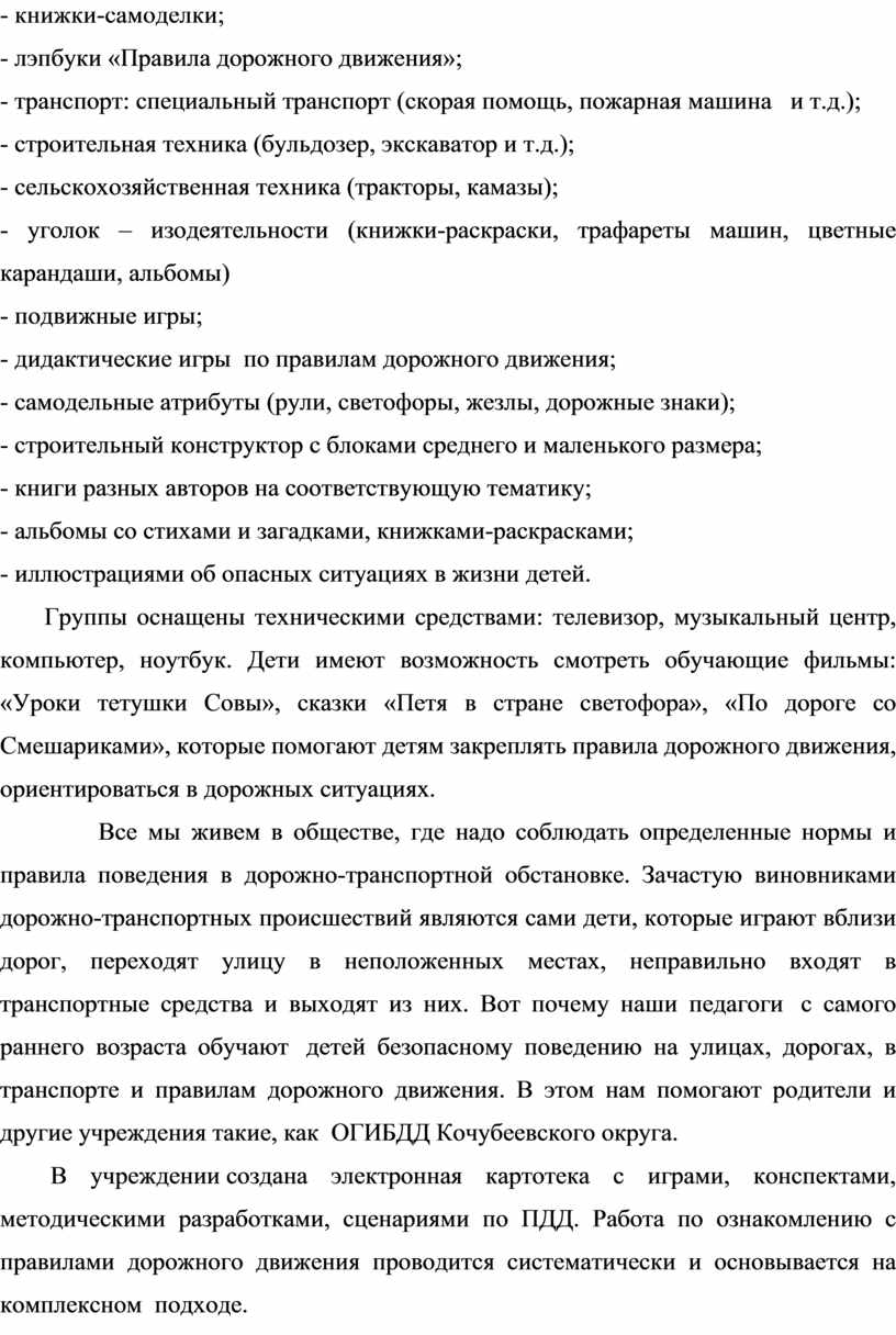 Все мы живем в обществе, где надо соблюдать определенные нормы и правила поведения в дорожно-транспортной обстановке. Зачастую виновниками дорожно-транспортных происшествий являются сами дети, которые играют вблизи дорог, переходят улицу в неположенных местах, неправильно входят в транспортные средства и выходят из них. Вот почему наши педагоги с самого раннего возраста обучают детей безопасному поведению на улицах, дорогах, в транспорте и правилам дорожного движения. В этом нам помогают родители и другие учреждения такие, как ОГИБДД Кочубеевского округа.