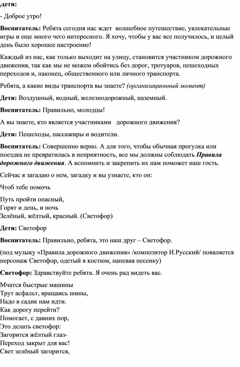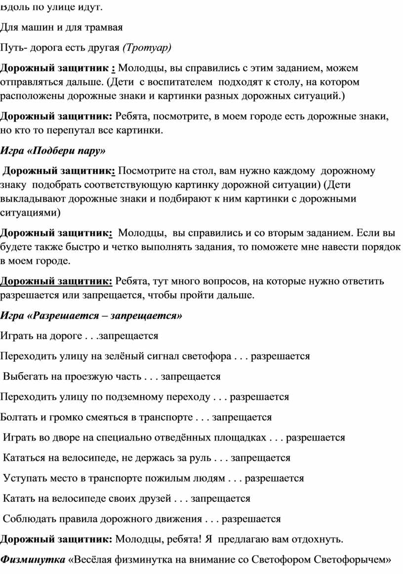 Воспитатель: Отлично, тогда мы все сейчас превращаемся в пешеходов. А для пешеходов существуют определённые правила дорожного движения.