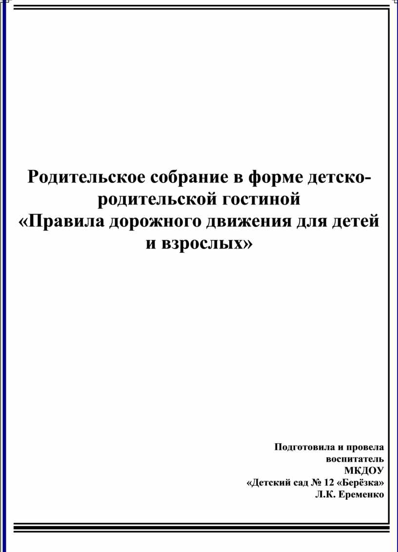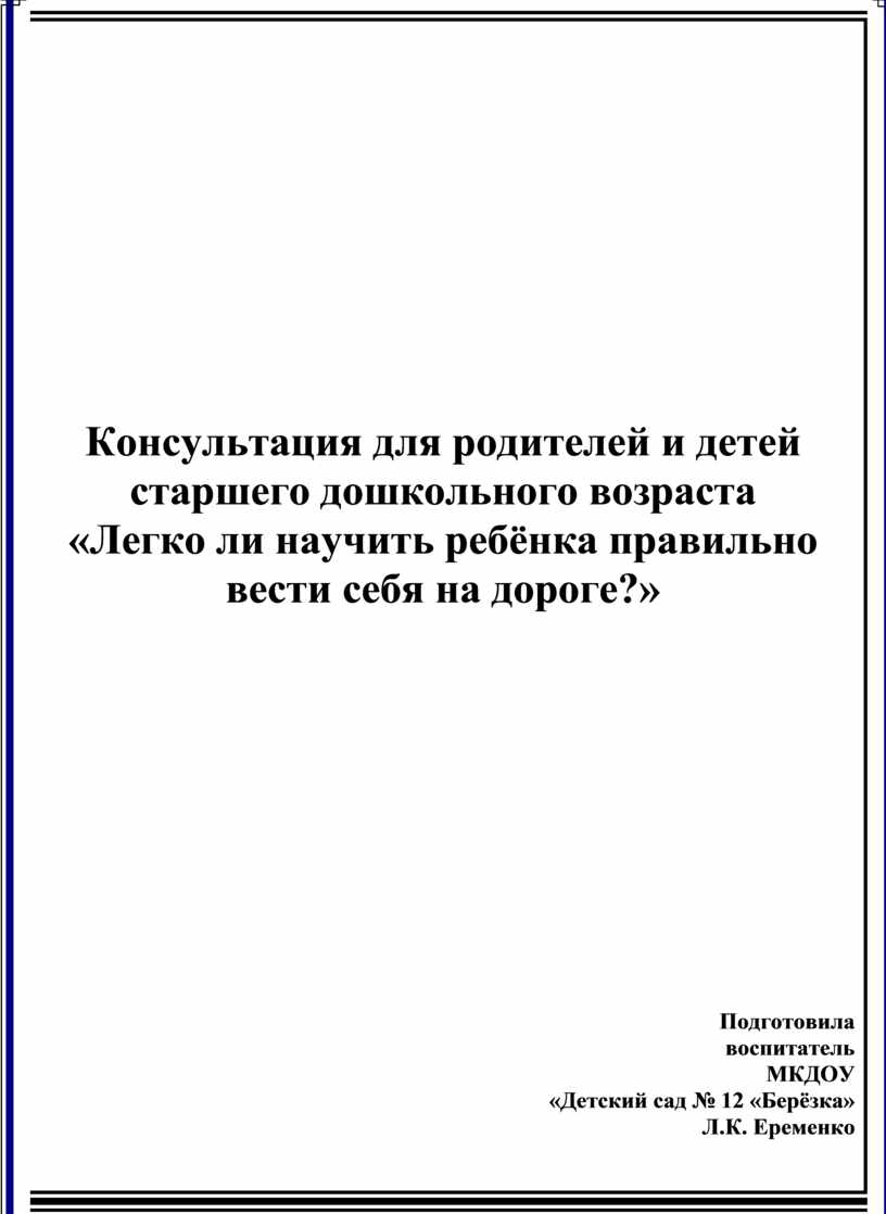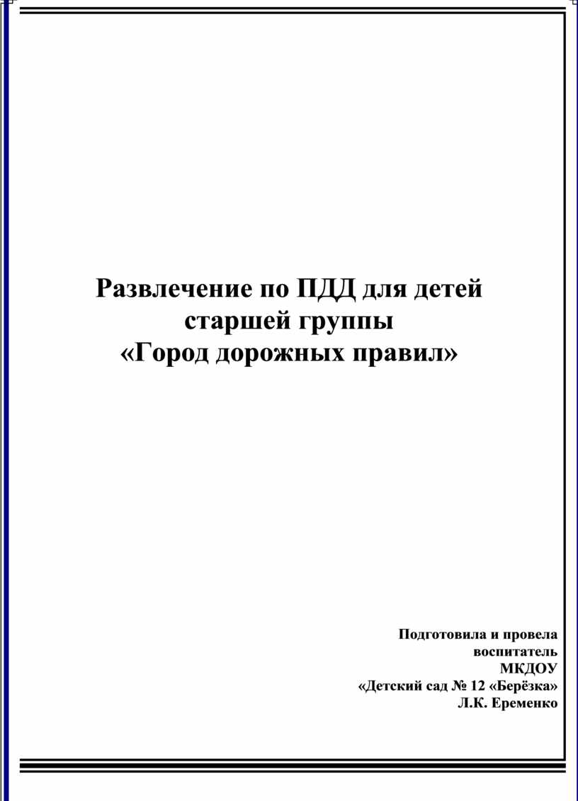 Цель: Формирование навыков безопасного поведения на дорогах у детей дошкольного возраста через ознакомление с правилами дорожного движения.