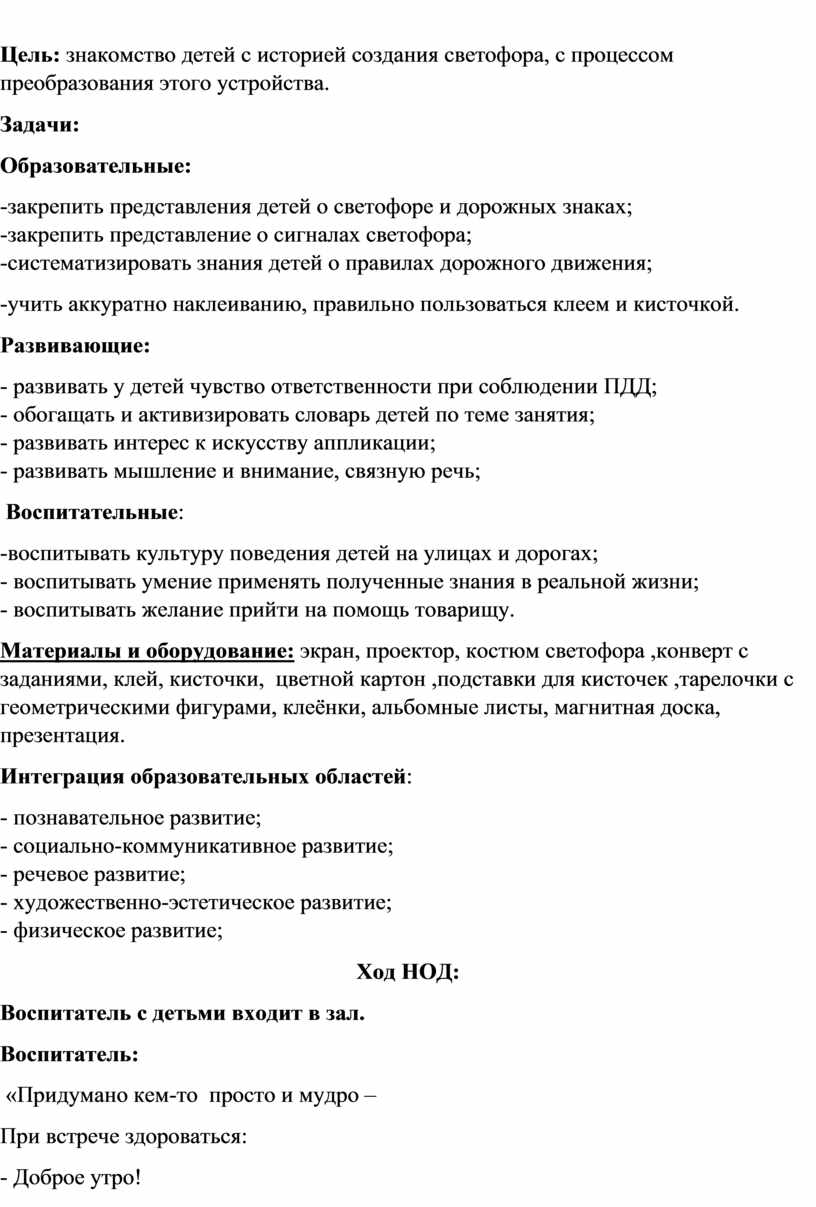 Цель: знакомство детей с историей создания светофора, с процессом преобразования этого устройства.