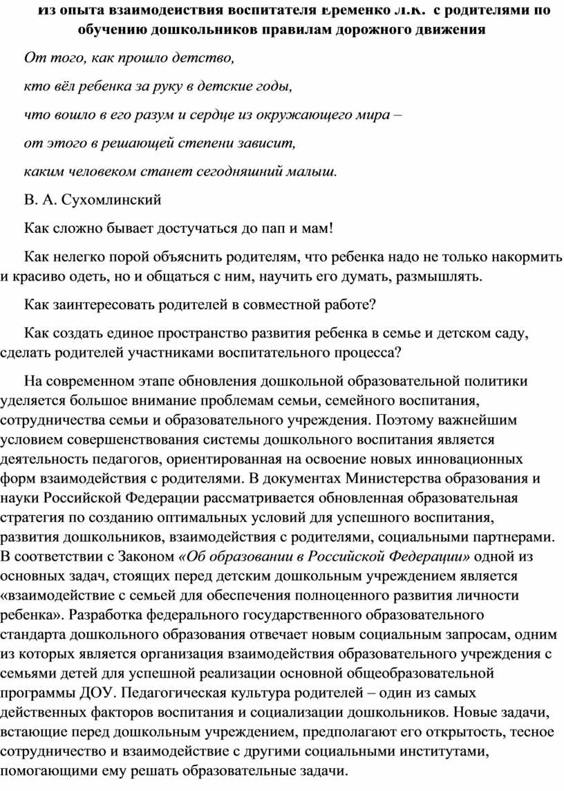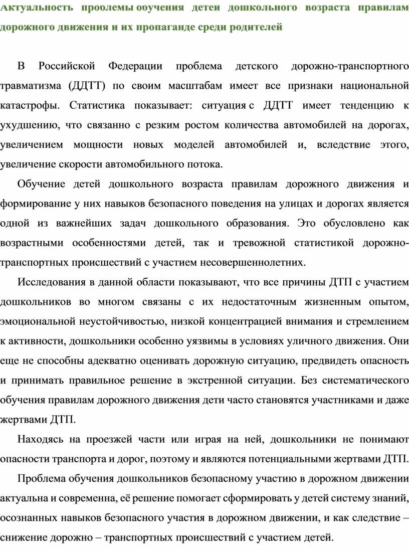 Актуальность проблемы обучения детей дошкольного возраста правилам дорожного движения и их пропаганде среди родителей