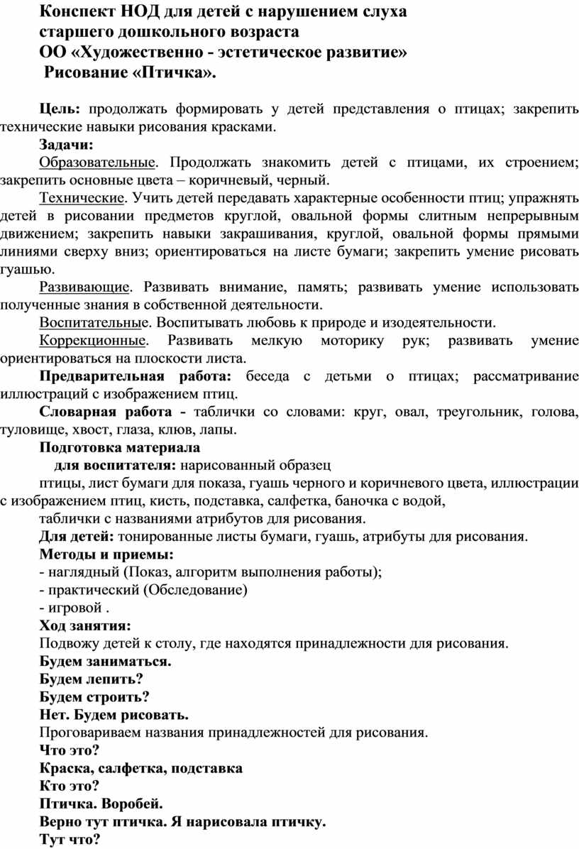 Конспект НОД для детей с нарушением слуха