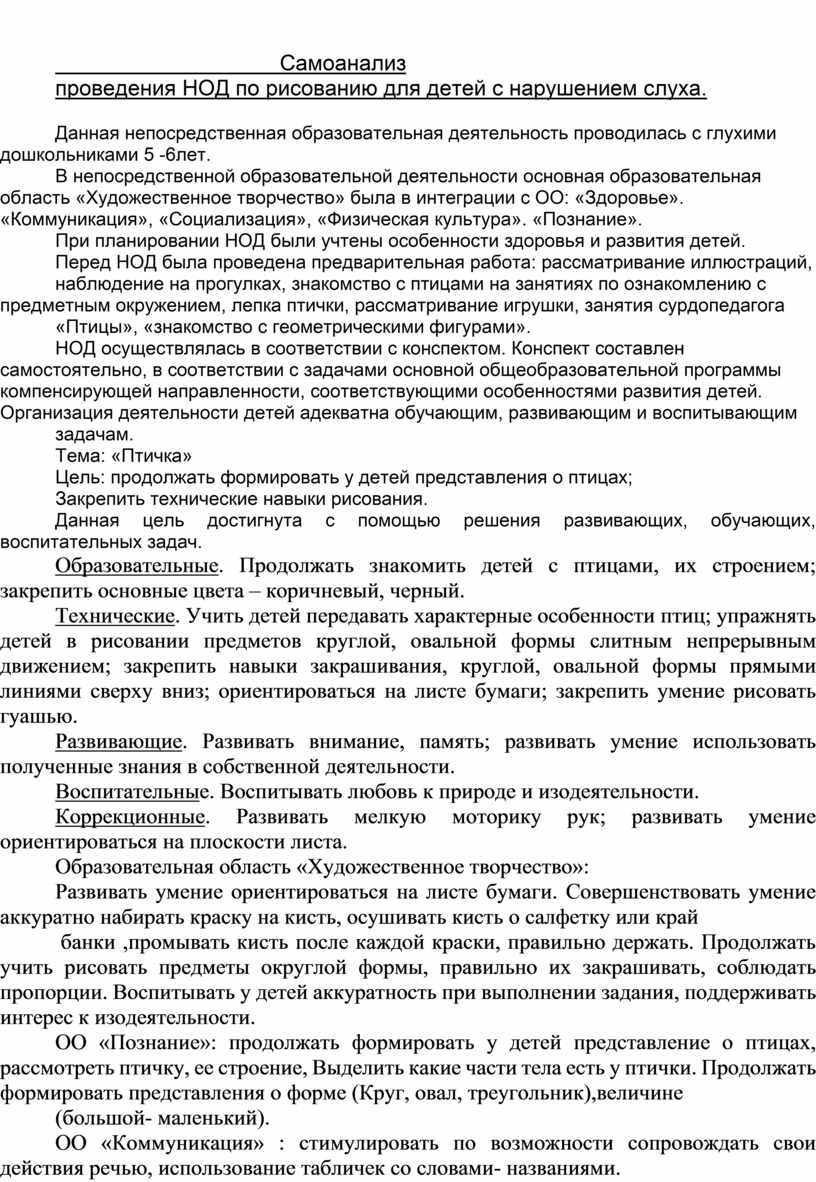 проведения НОД по рисованию для детей с нарушением слуха.