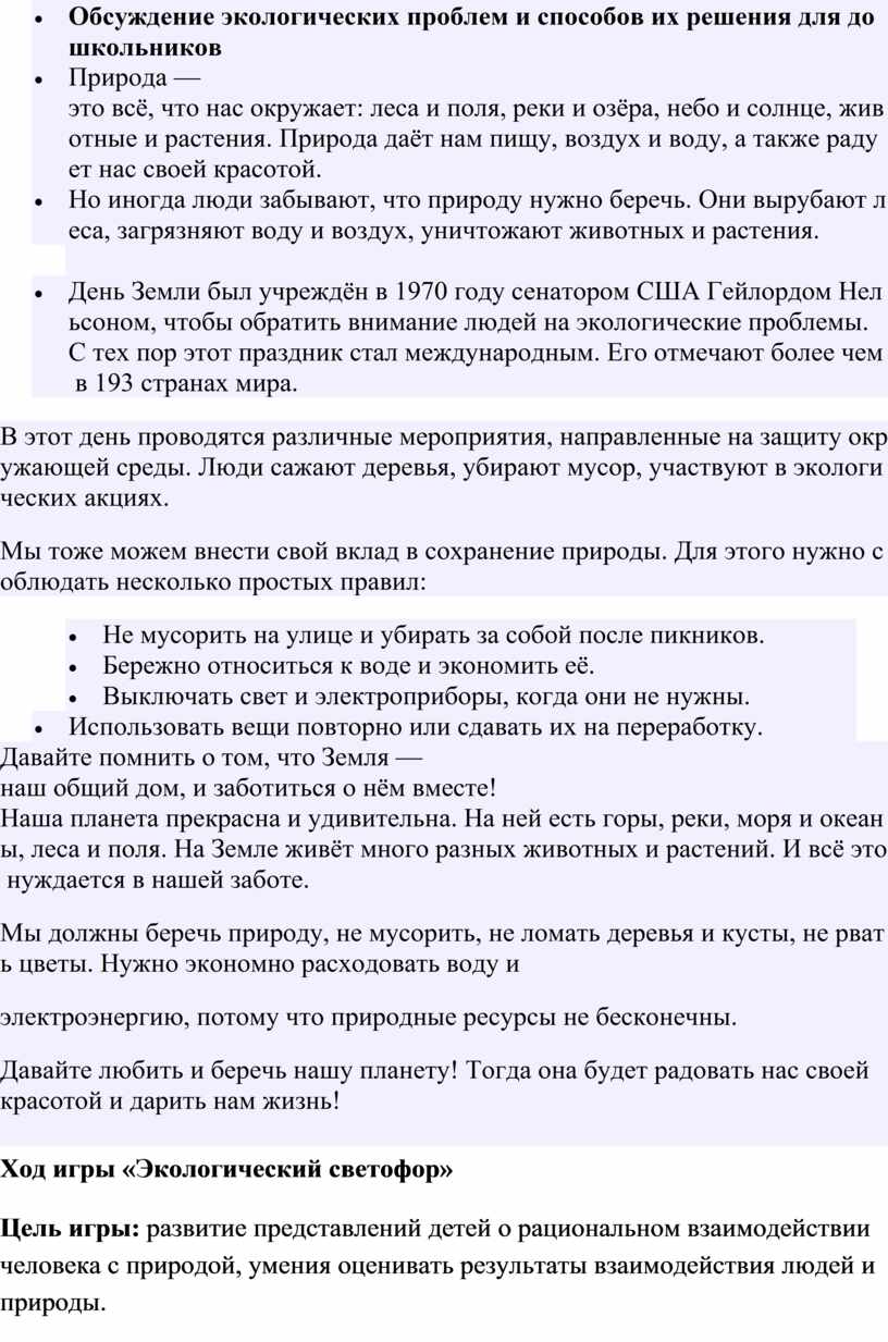 · Обсуждение экологических проблем и способов их решения для дошкольников