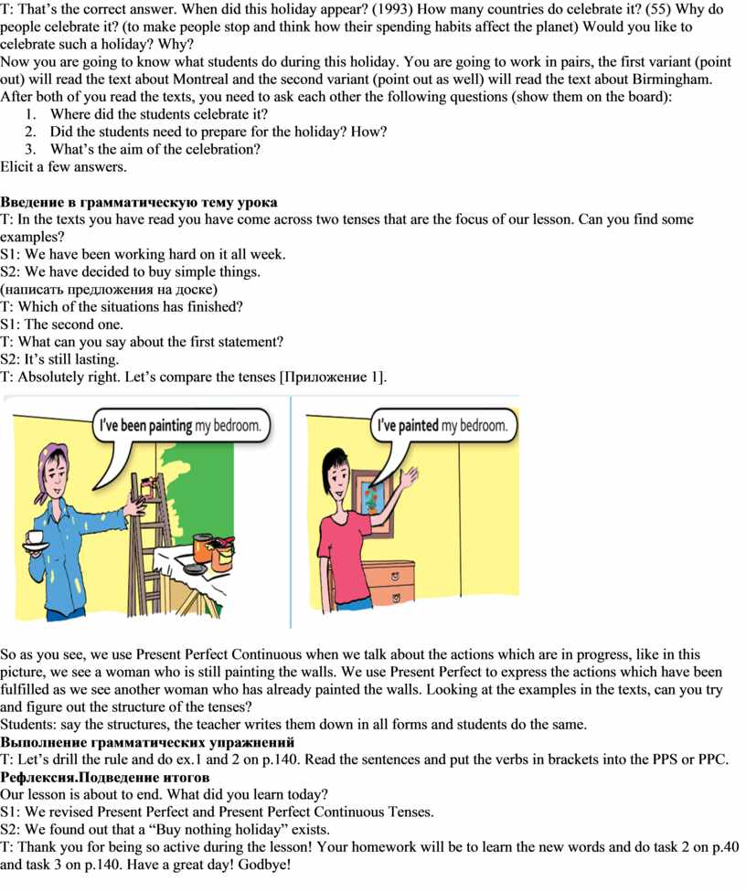 T: Absolutely right. Let’s compare the tenses [Приложение 1].