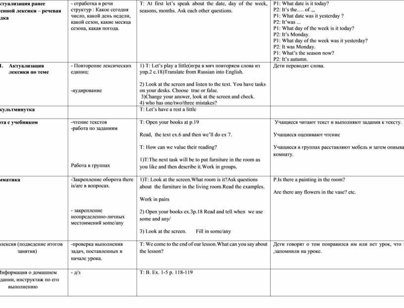 T.: Hello, children. I’m glad to see you! How are you? Are you ready to start our lesson |