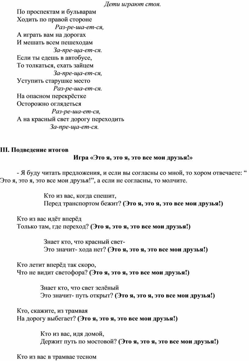 - Я буду читать предложения, и если вы согласны со мной, то хором отвечаете: “ Это я, это я, это все мои друзья!”, а если не согласны, то молчите.