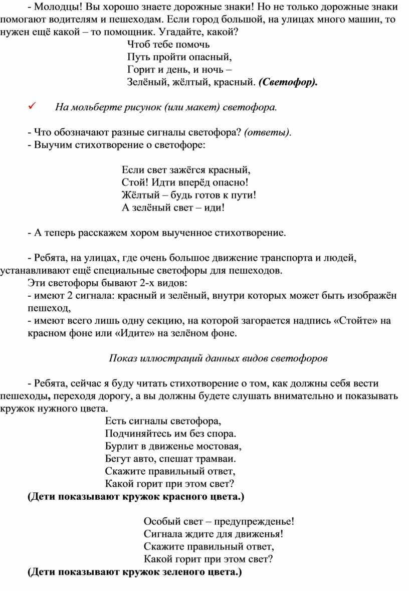 - Ребята, сейчас я буду читать стихотворение о том, как должны себя вести пешеходы, переходя дорогу, а вы должны будете слушать внимательно и показывать кружок нужного цвета.