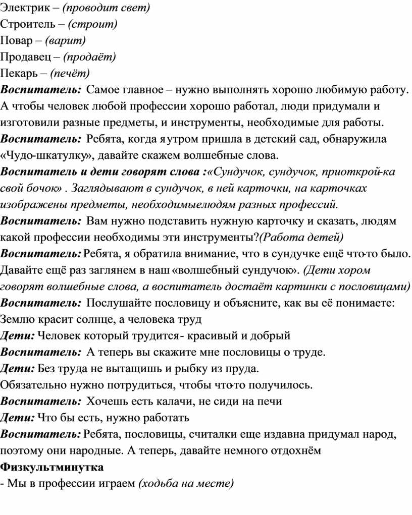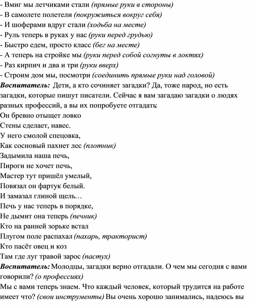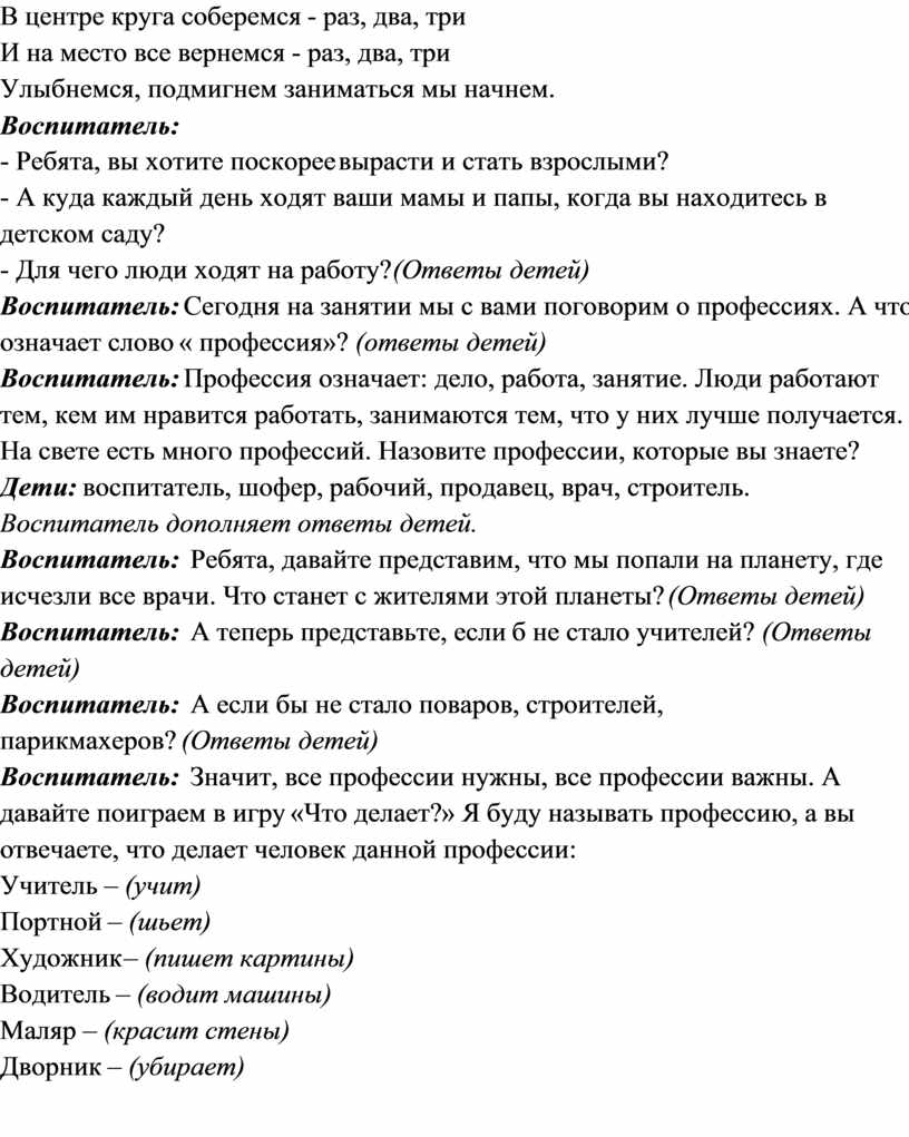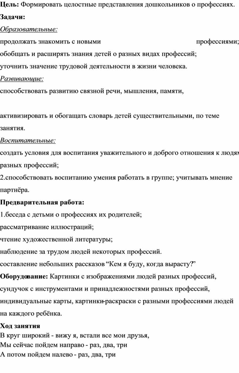 целостные представления дошкольников о профессиях.