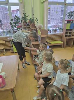 Воспитатель демонстрирует непрозрачный чайник с водой.