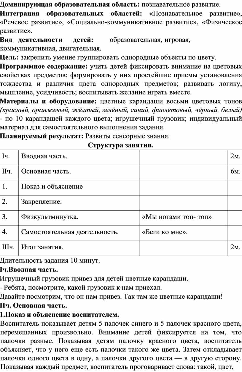 Планируемый результат: Развиты сенсорные знания. Структура занятия.