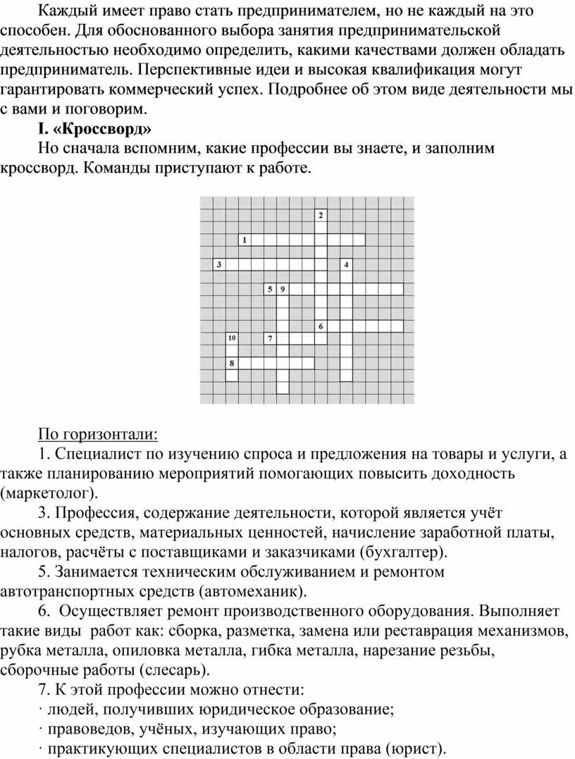 I. «Кроссворд»