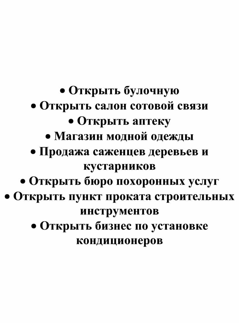 · Открыть салон сотовой связи