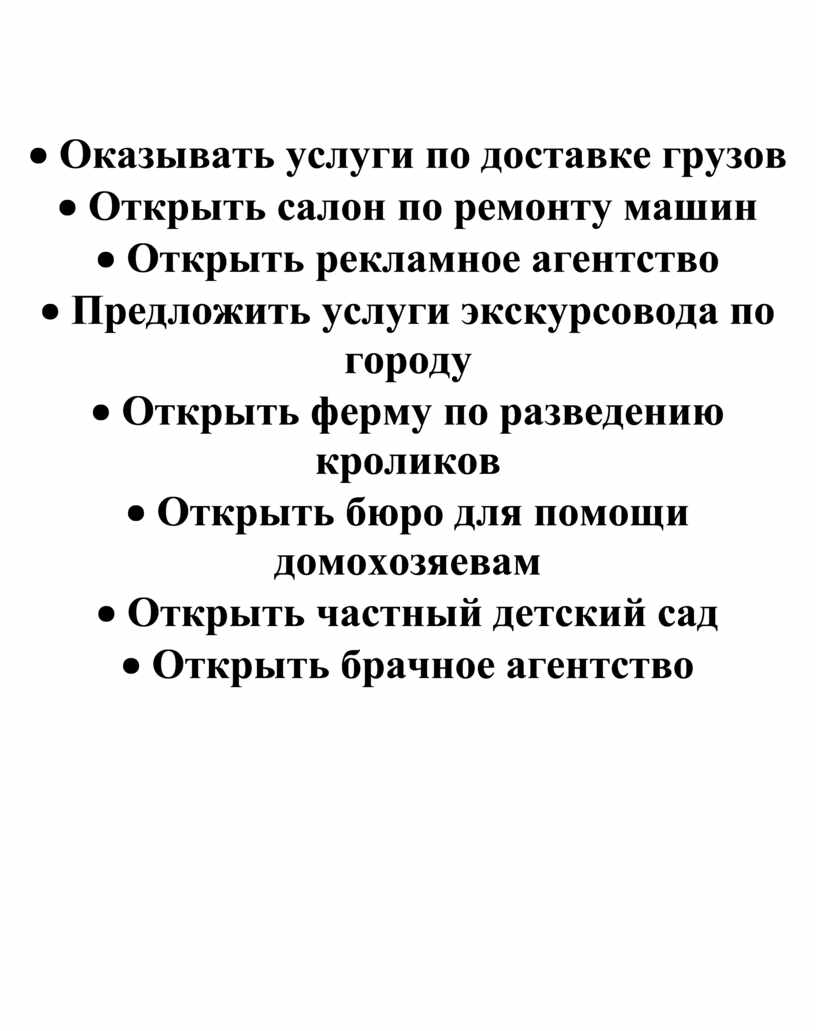 · Открыть бюро для помощи домохозяевам
