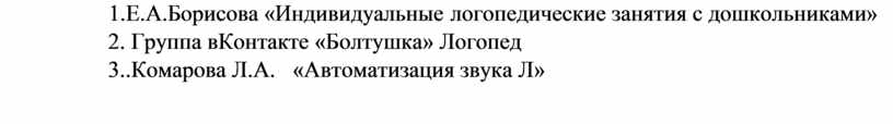 1.Е.А.Борисова «Индивидуальные логопедические занятия с дошкольниками»
