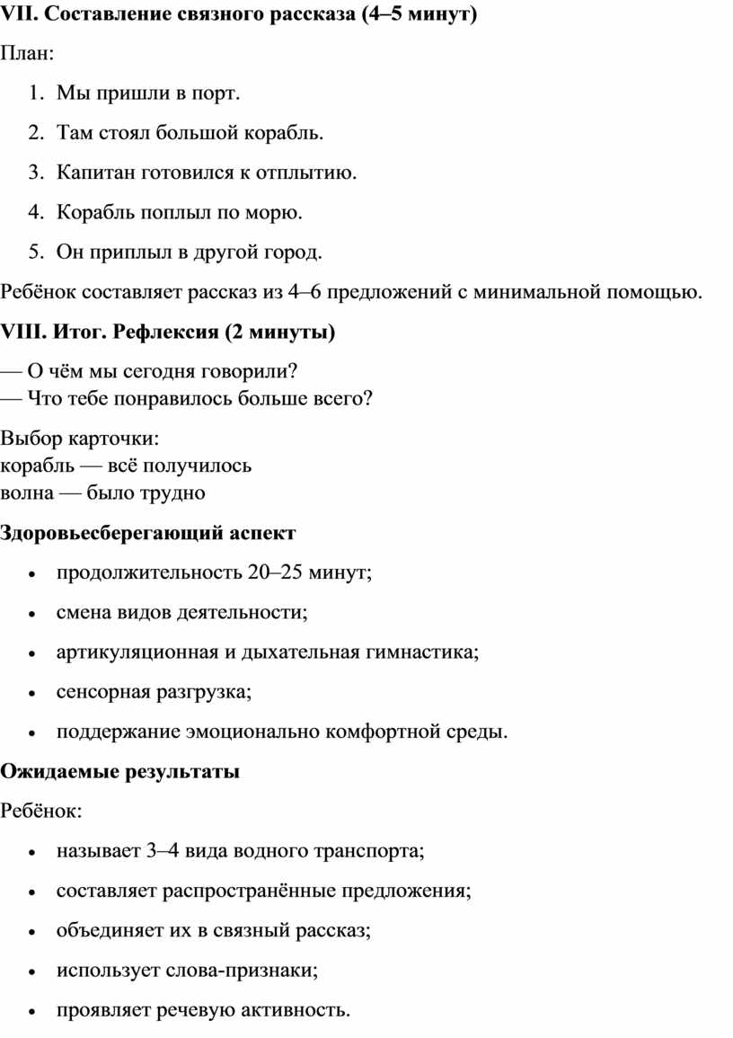 VII. Составление связного рассказа (4–5 минут)