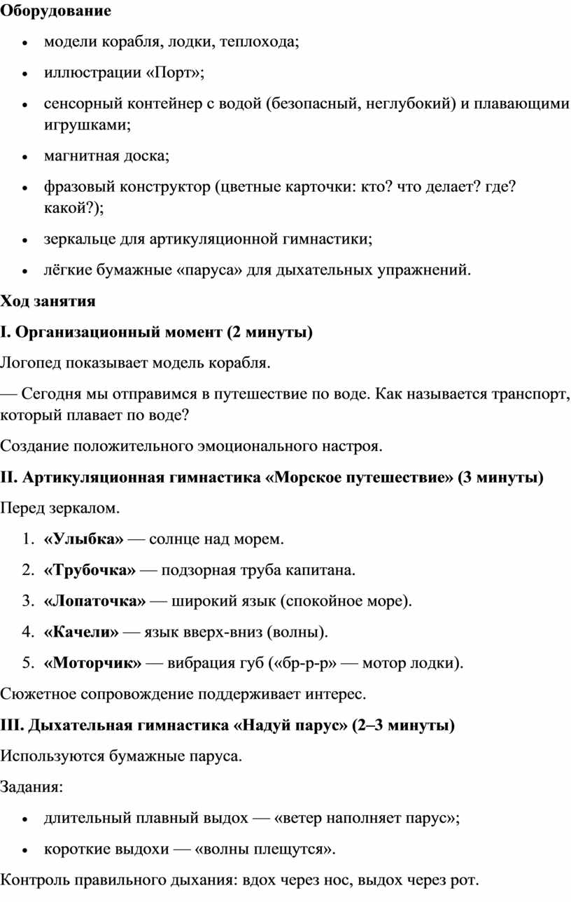 II. Артикуляционная гимнастика «Морское путешествие» (3 минуты)