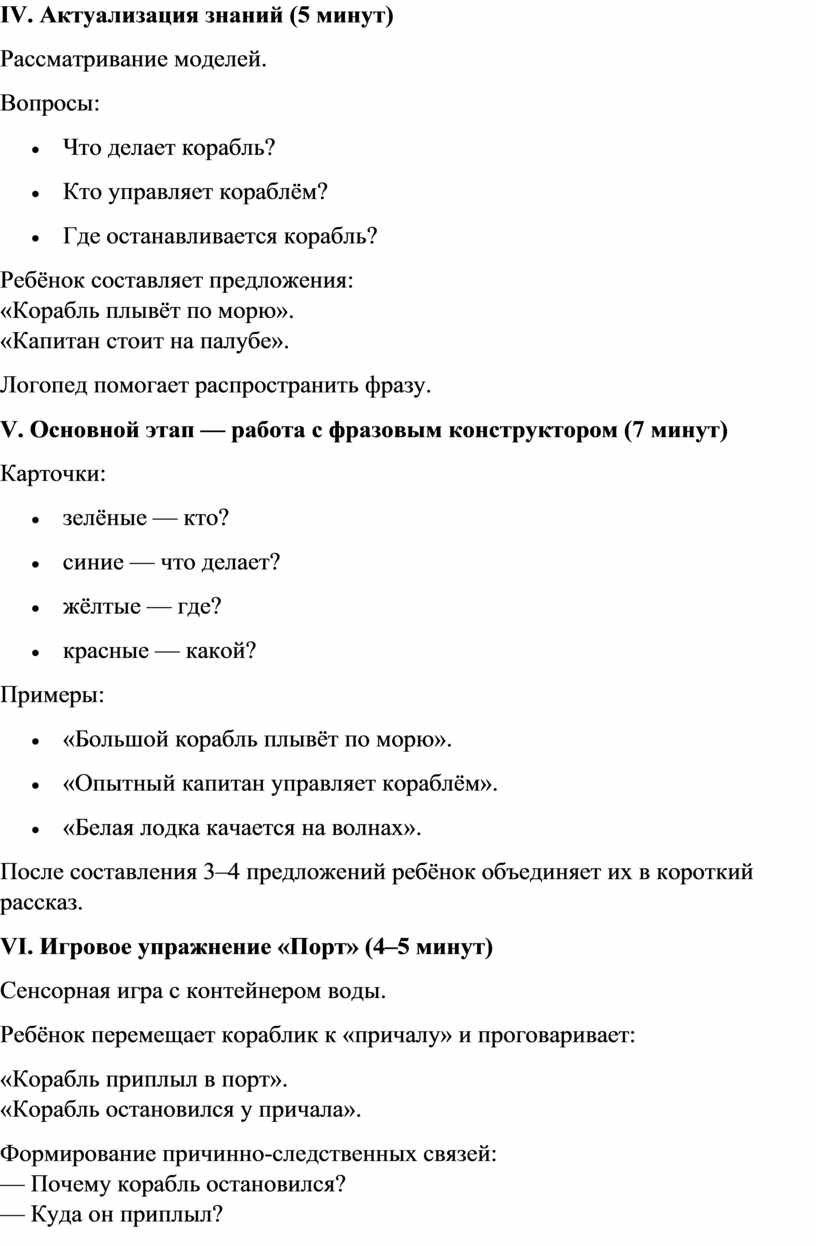 VI. Игровое упражнение «Порт» (4–5 минут)