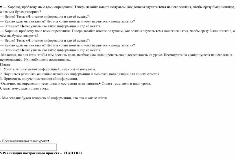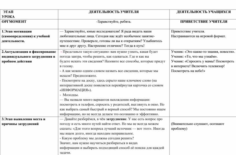 цели, необходимо спланировать свою деятельность на уроке. Посмотрите на