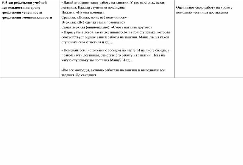 9.Этап рефлексии учебной деятельности на уроке