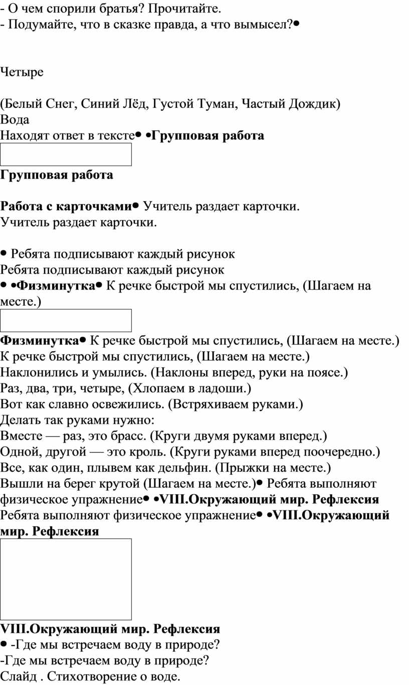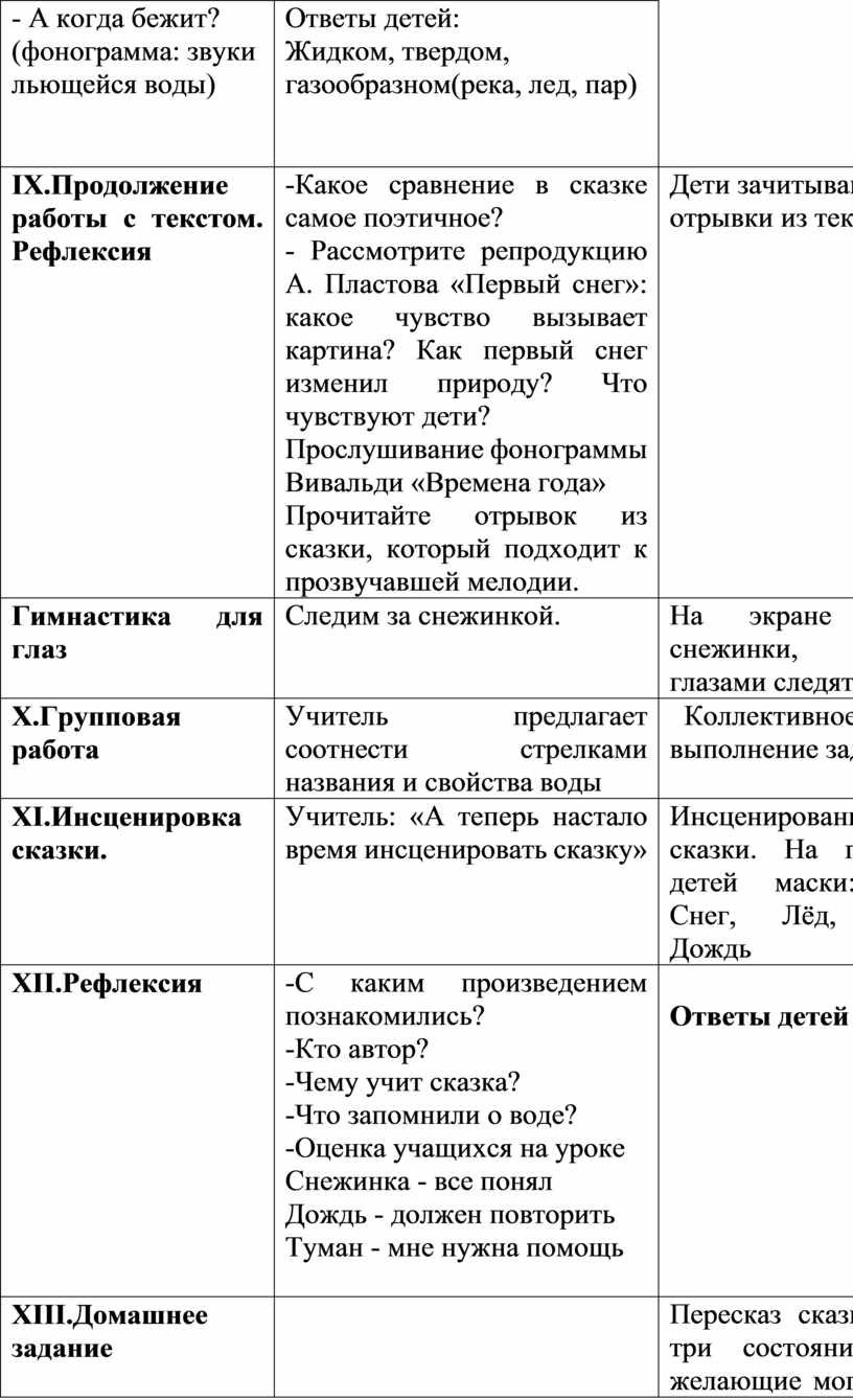 Учитель: назовите времена года; свойство воды (твердый, жидкий, газообразный) |