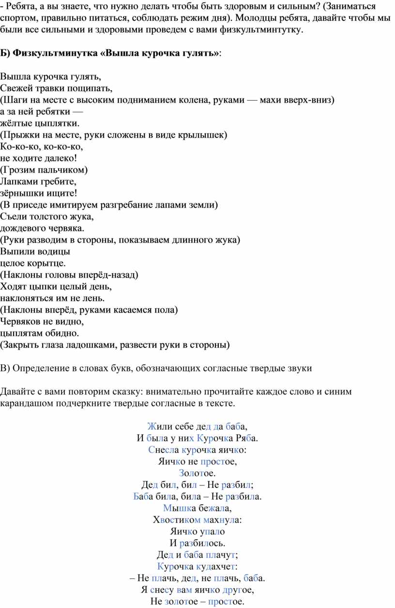 Б) Физкультминутка «Вышла курочка гулять»: