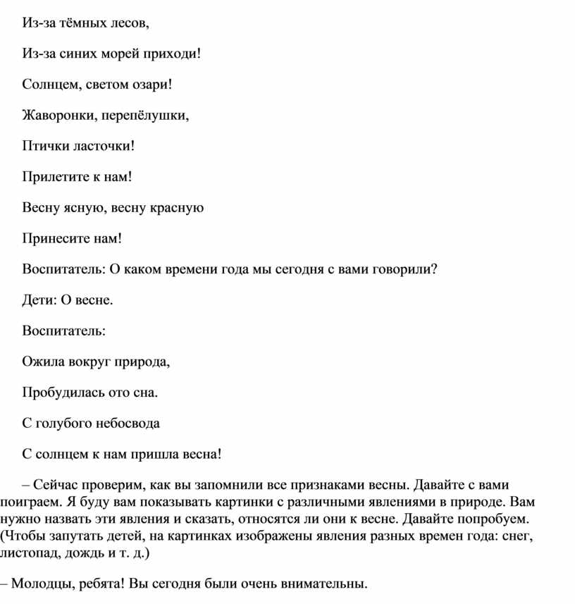 Образовательные: расширять представления детей об изменениях в природе с приходом весны.