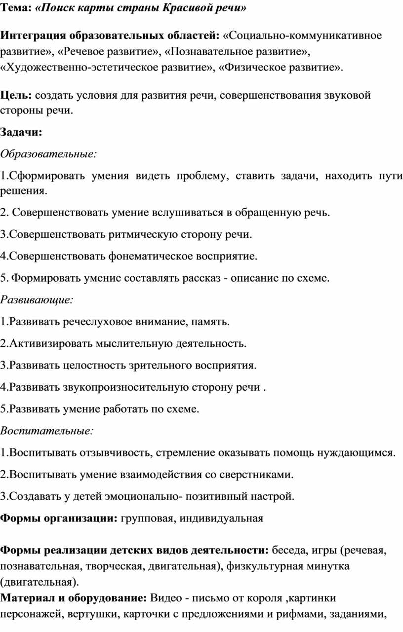 Тема: «Поиск карты страны Красивой речи»