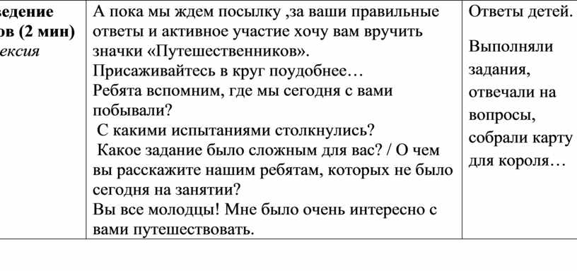 А пока мы ждем посылку ,за ваши правильные ответы и активное участие хочу вам вручить значки «Путешественников». Присаживайтесь в круг поудобнее… Ребята вспомним, где мы сегодня с вами побывали? С какими испытаниями столкнулись? Какое задание было сложным для вас? / О чем вы расскажите нашим ребятам, которых не было сегодня на занятии? Вы все молодцы! Мне было очень интересно с вами путешествовать. |