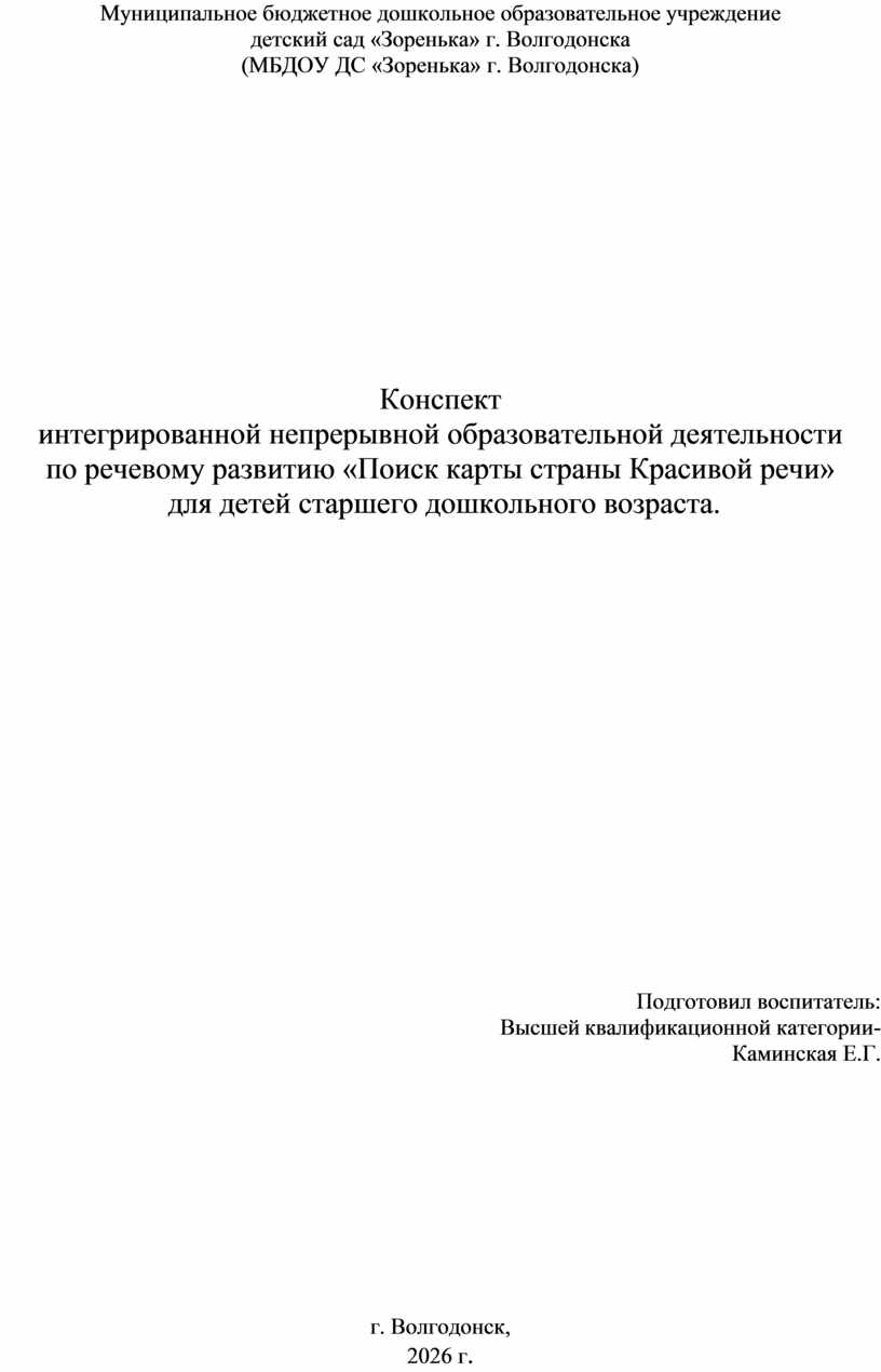 (МБДОУ ДС «Зоренька» г. Волгодонска)