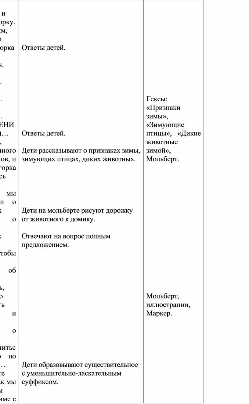 Материал и оборудование: иллюстрации, гексы, картинки с изображением диких животных, их жилищ, мяч, карандаши, фломастеры.
