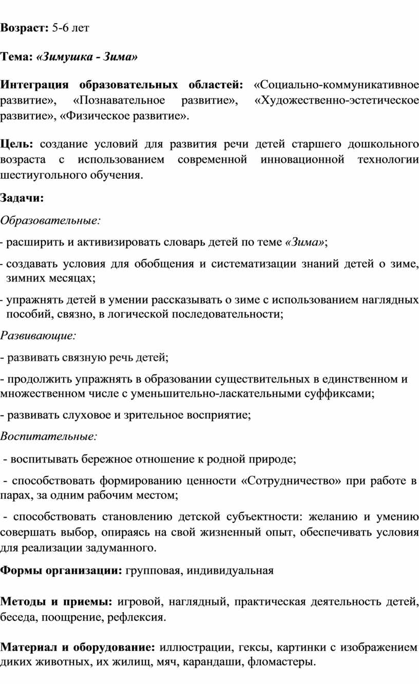 деятельности по речевому развитию «Зимушка -зима» с использованием технологии «Шестиугольное обучение»
