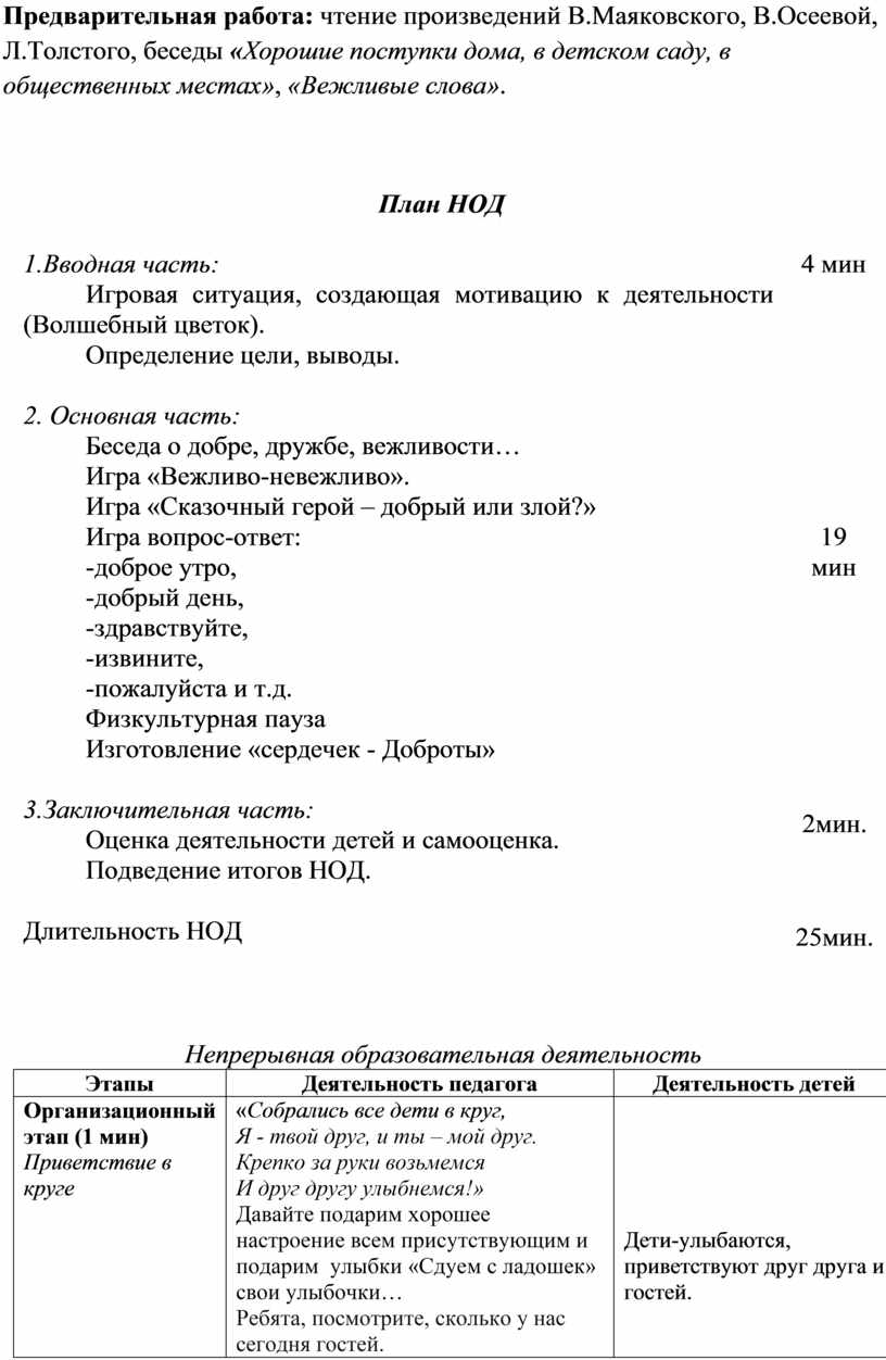 Предварительная работа: чтение произведений В.Маяковского, В.Осеевой, Л.Толстого, беседы «Хорошие поступки дома, в детском саду, в общественных местах», «Вежливые слова».