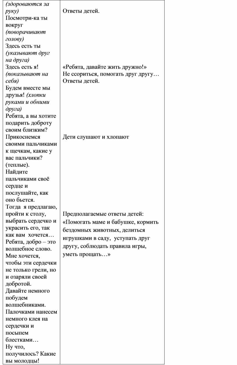 2. Основная часть: Беседа о добре, дружбе, вежливости… Игра «Вежливо-невежливо». Игра «Сказочный герой – добрый или злой?» Игра вопрос-ответ: -доброе утро, -добрый день, -здравствуйте, -извините, -пожалуйста и т.д. Физкультурная пауза Изготовление «сердечек - Доброты»