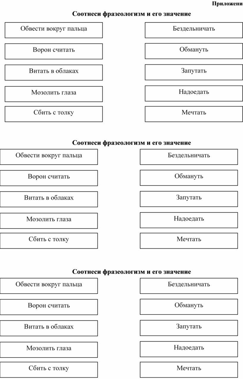 Соотнеси фразеологизм и его значение