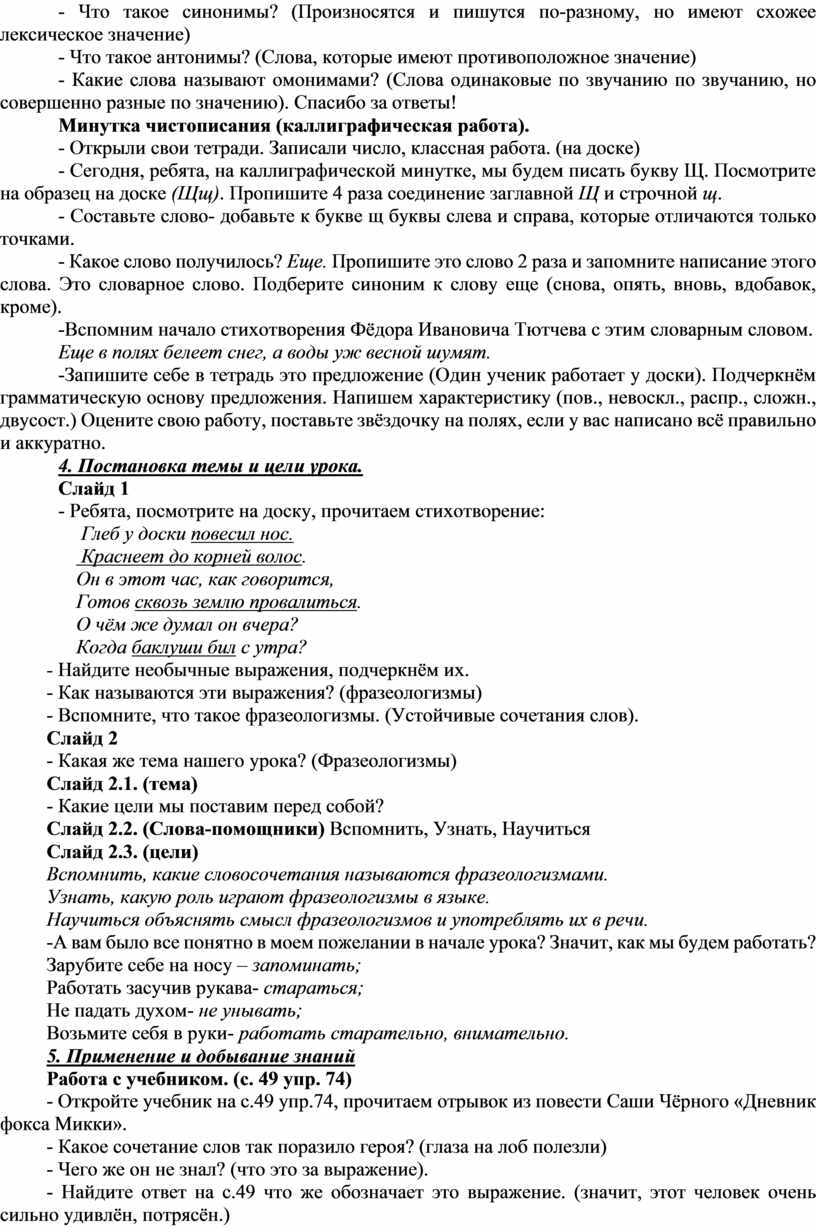 Цель урока: обеспечить условия для формирования у учащихся представления об устойчивых выражениях, дать понятие фразеологизма, учиться употреблять в речи фразеологизмы с целью её обогащения.