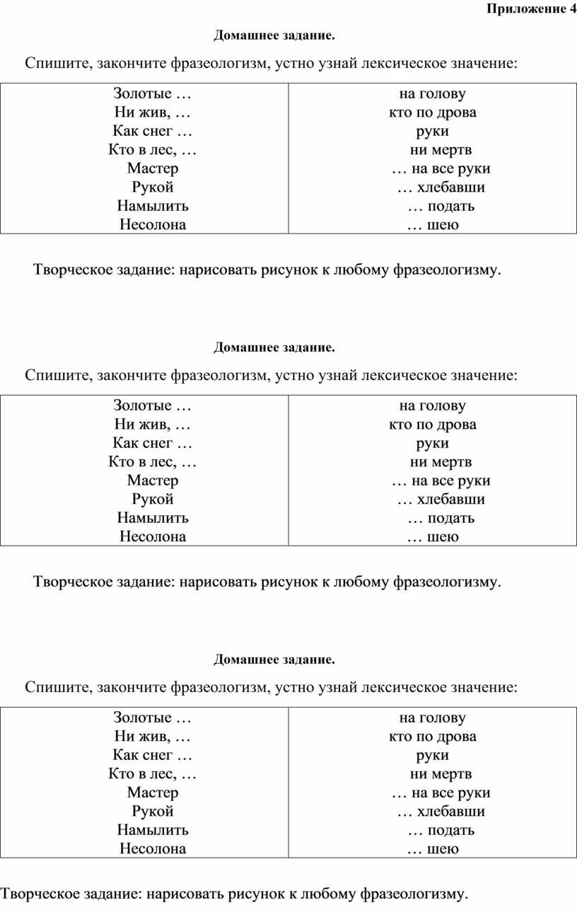- Самостоятельно выпишите 3 новых фразеологизма и запомните их значение.