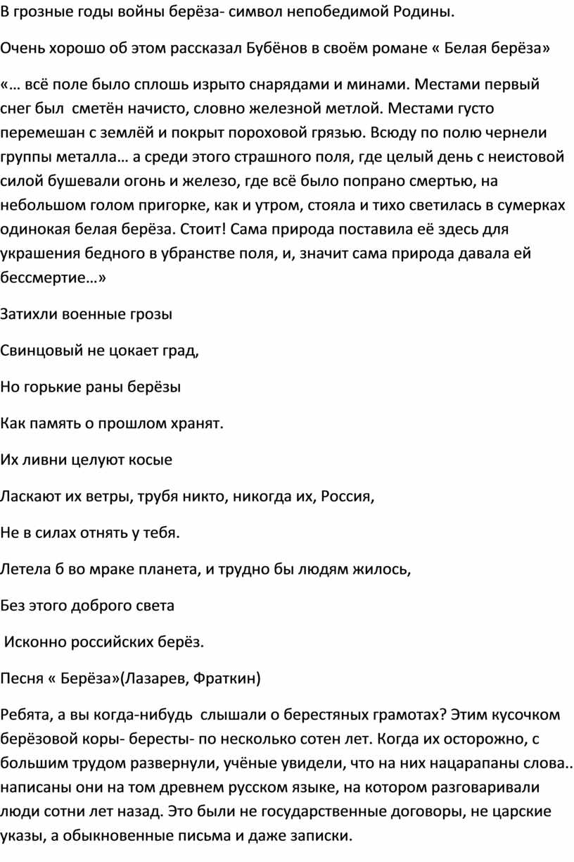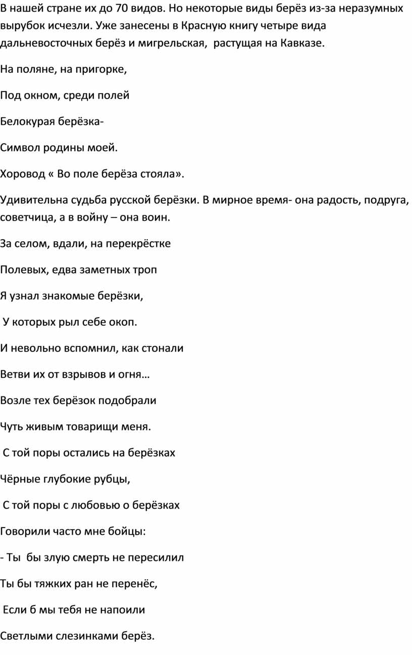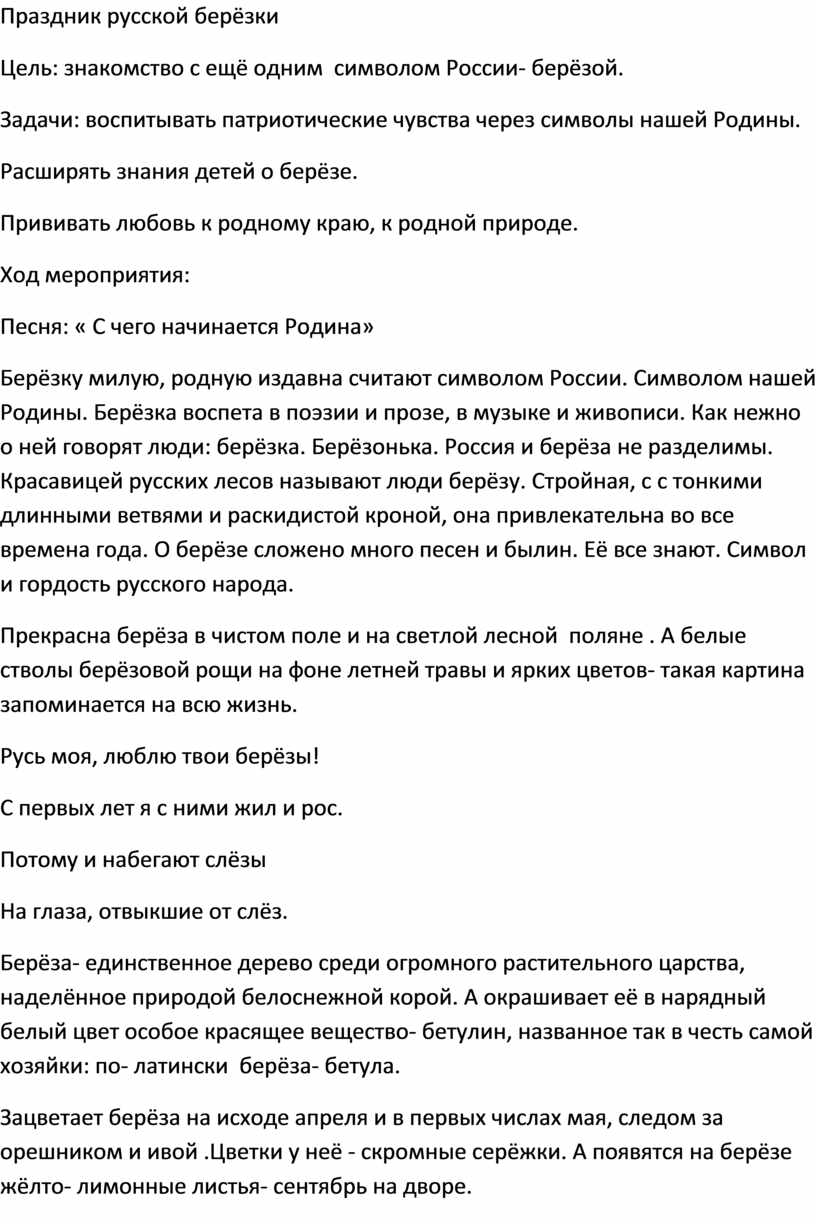 Где –бы не росла берёзка – всюду она приносит людям радость и свет. Берёза – символ России, нашей Родины. И быть ей на наших просторах вечно, потому что вечен наш народ, вечна земля русская!