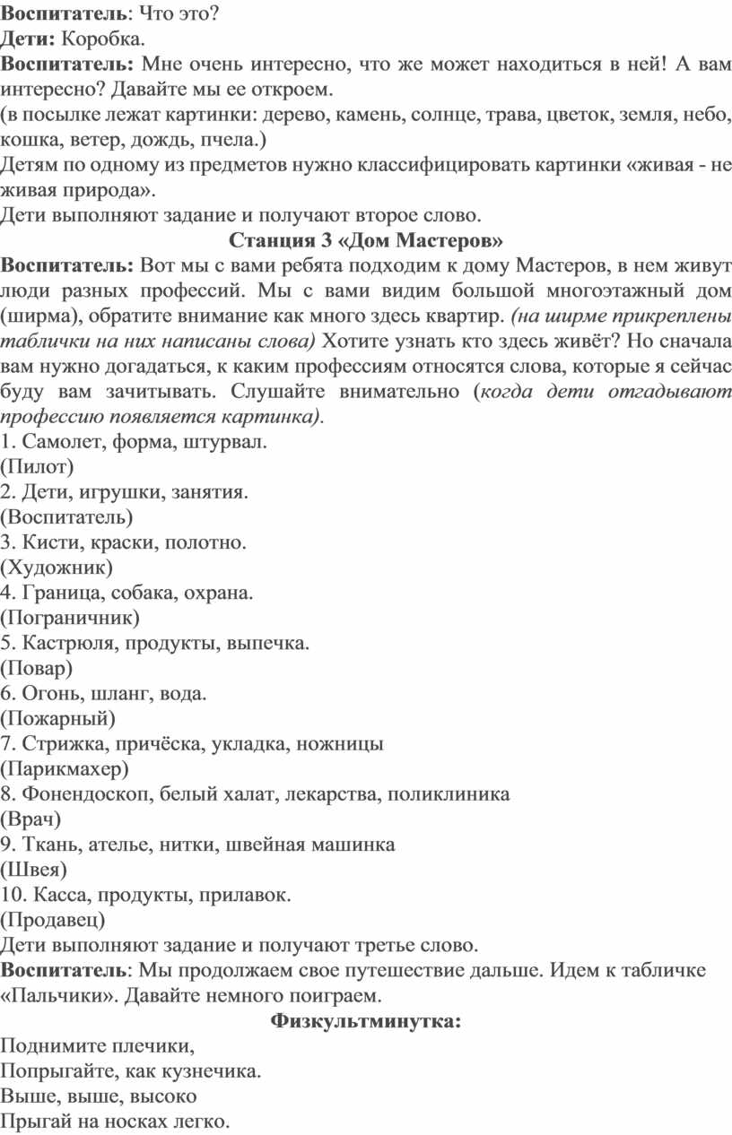 Воспитатель: Отлично, дети! За выполненное задание мы получаем первое слово. Идем дальше.
