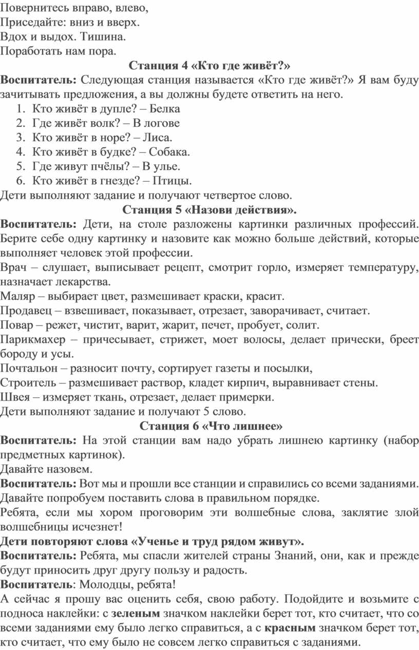 Воспитатель: Ну что, ребята, поможем жителям страны Знаний? (Да). Тогда отправляемся. На нашей карте нарисованы станции. Как думаете, куда же нам отправиться в первую очередь?