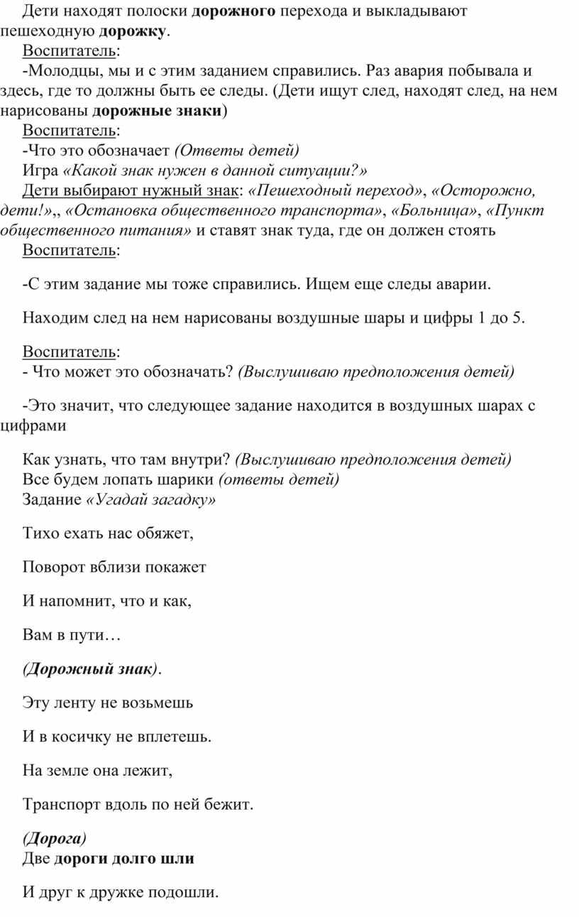 Конспект квест-игры с детьми старшего дошкольного возраста «Новые приключения на дороге»